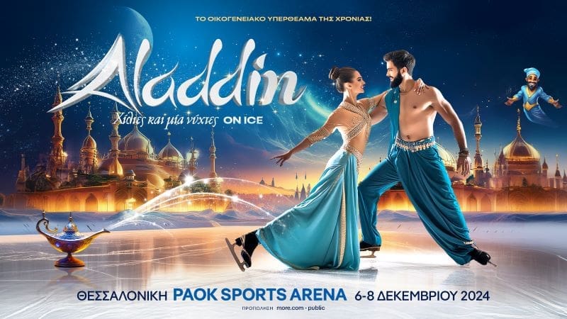 Η νέα μεγάλη υπερπαραγωγή Aladdin on Ice έρχεται στην Θεσσαλονίκη! Τα πολύχρωμα παζάρια της Ανατολής ζωντανεύουν στο Paok sports arena. Οι ήρωες του παραμυθιού «1000 και μία νύχτες» θα μαγέψουν μικρούς και μεγάλους.