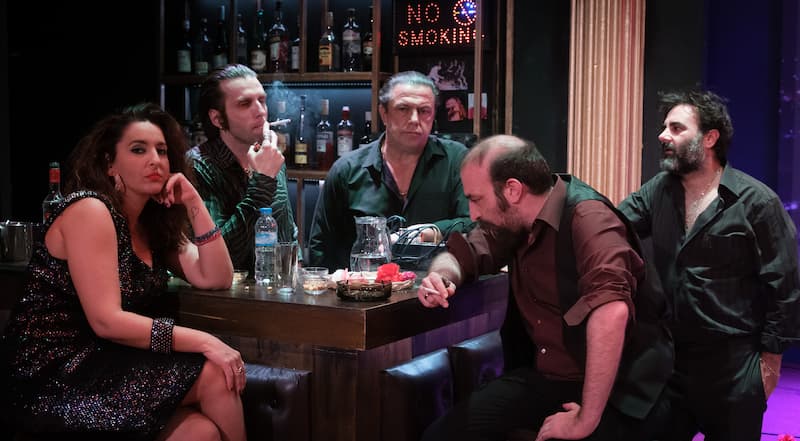 Η λαϊκή ελληνική πραγματικότητα σκιαγραφείται μέσα από τους ήρωες του έργου: αλκοόλ, τσιγάρο, «σκυλάδικα» και λαϊκά τραγούδια, αλλά και πονηριά, συμφέρον, απληστία, αντιφάσεις και αμαρτίες που τους καταδιώκουν. Άνθρωποι με προτερήματα και αδυναμίες που προσπαθούν να επιβιώσουν σε έναν ρευστό κόσμο, ο οποίος δεν μπορεί να τους προσφέρει καμία ασφάλεια. Η προκατάληψη απέναντι σε ό,τι είναι έξω από την πραγματικότητα των ηρώων, απέναντι στο διαφορετικό και το καινούργιο, βρίσκει στόχο στο πρόσωπο του Σοφοκλή και ταυτόχρονα γίνεται αφορμή να αποκαλυφθεί η ανθρώπινη πλευρά τους, με όλες τις αδυναμίες και τα προτερήματά τους.